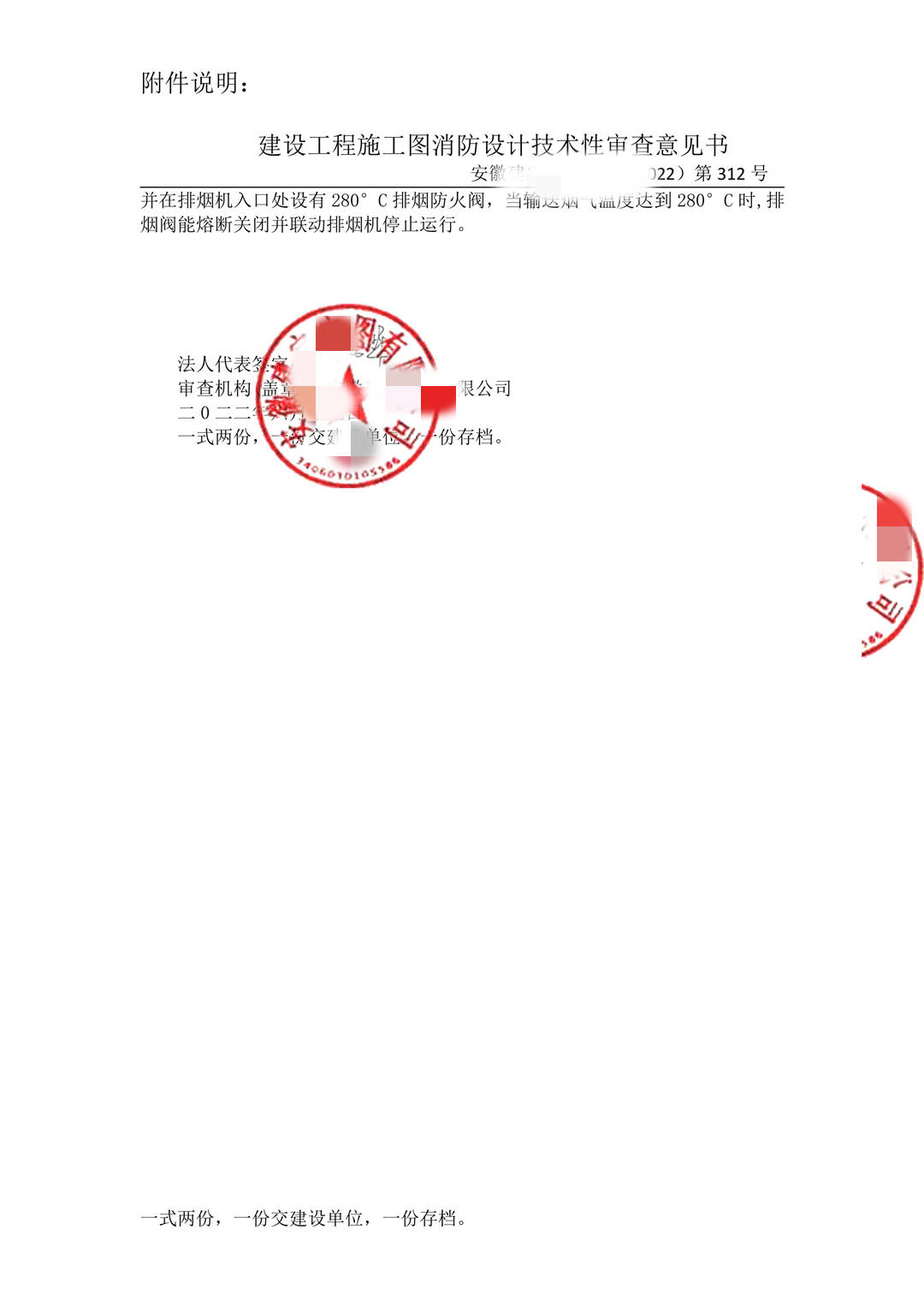 机构消防审查意见书-滁州市建筑工程施工图审查中心